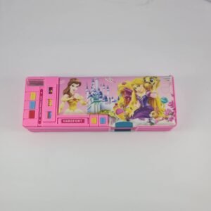 Button pencil box with built-in sharpener, lock feature, and 4 compartments that open with separate buttons. Available in 6 designs – 4 for girls and 2 for boys. Item No: B-8808