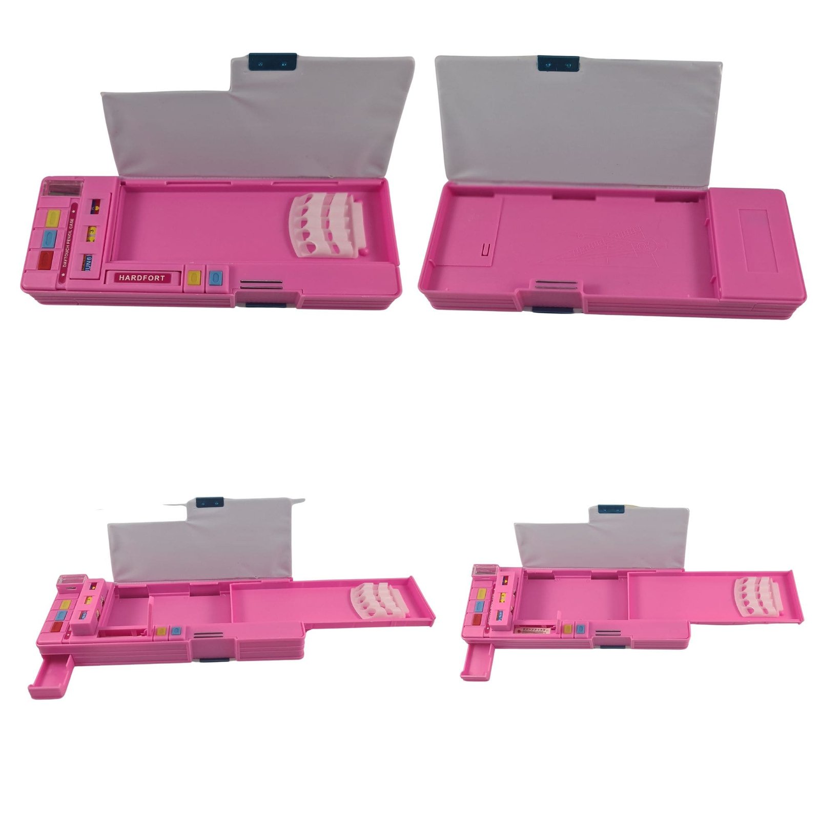 Multicolor Double-Sided Button Pencil Box – Spacious & Cartoon